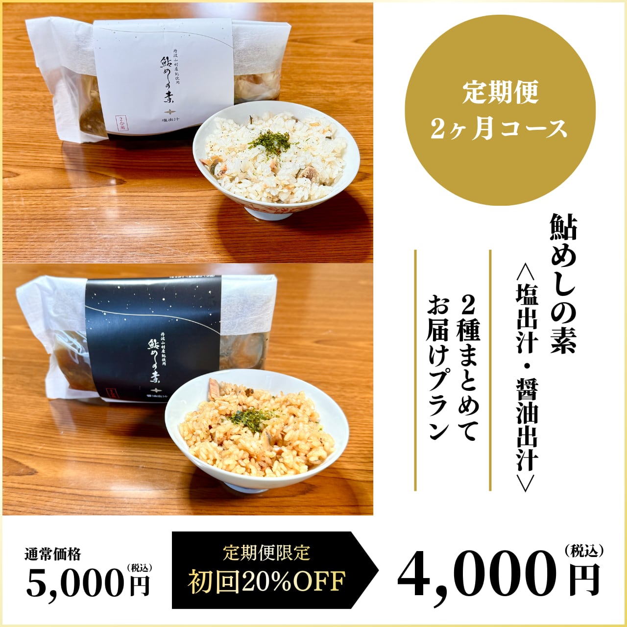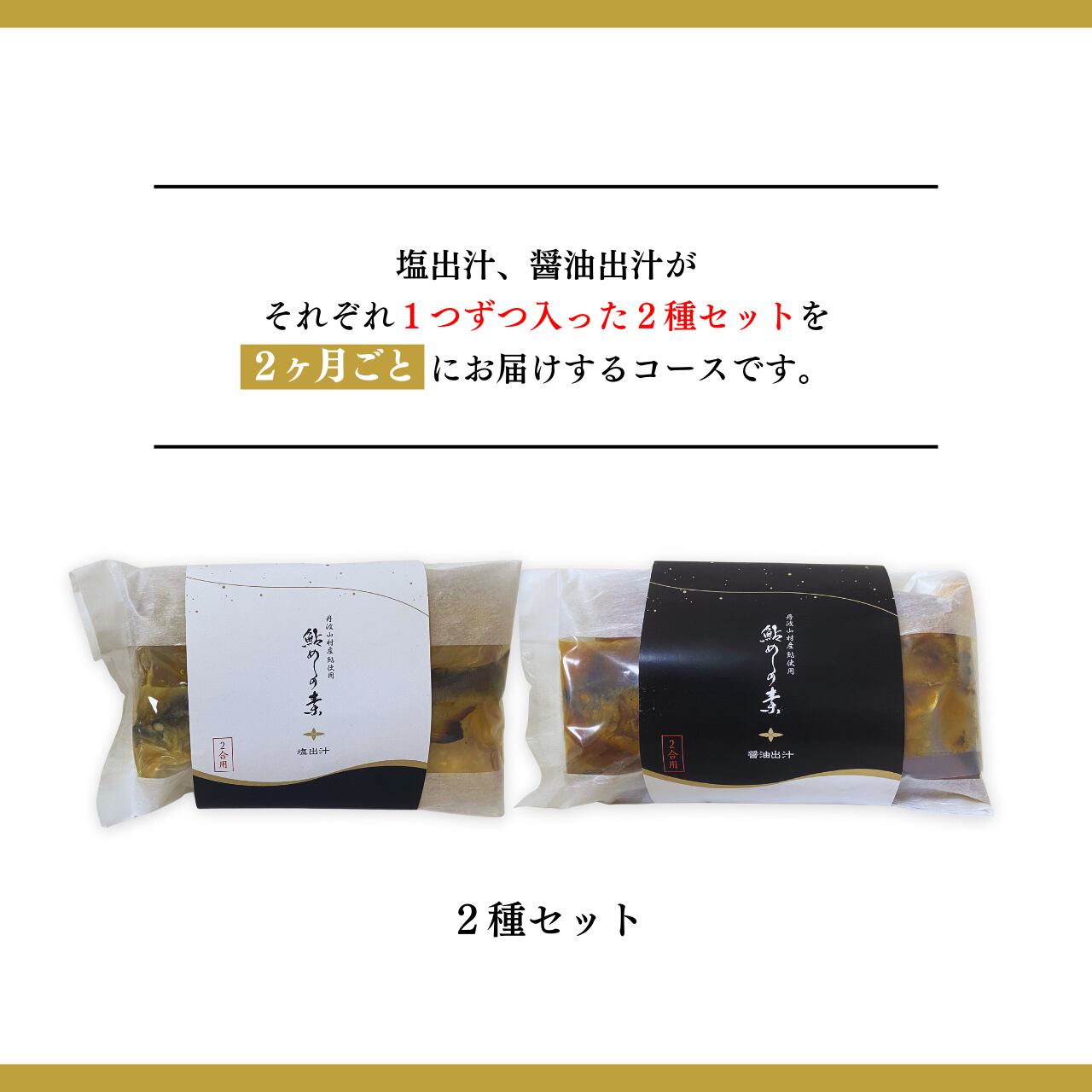塩出し、醤油出汁2つの異なる味わいを【毎回セットで】定期的にお届けするお得なプランです。鮎めしを日常的に楽しみたい方へ。満足のボリュームで、自分へのご褒美やシェアにも最適です。