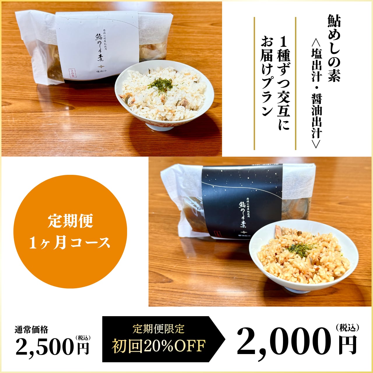 【1ヵ月コース】鮎めしの素 交互にお届けプラン(塩、醤油出汁どちらか1種ずつ)