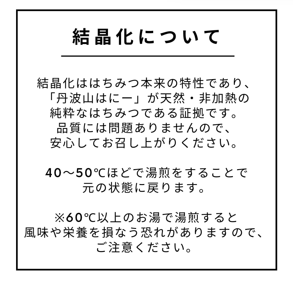 結晶化は純粋なはちみつである証拠です。