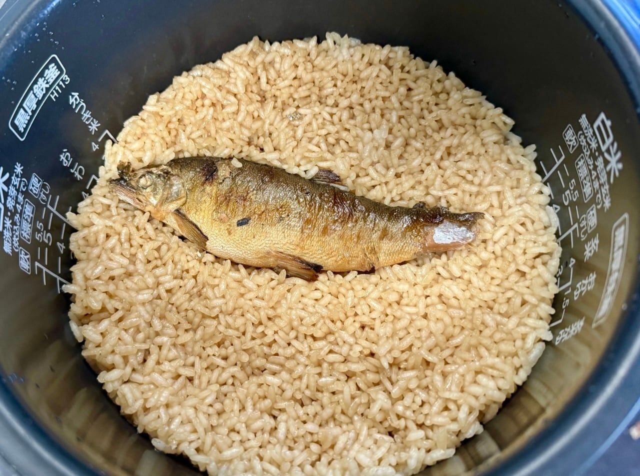 鮎をのせて、炊飯器のスイッチON! -